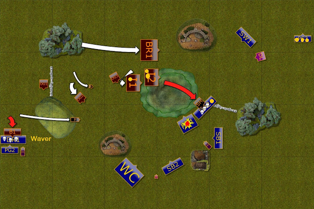 I was also wondering if I could engage Brock Riders on the right a turn earlier but it is possible I would have not had a good position for a flank attack yet. However, it was still possible to fit three elements, i.e. Drakon Lord, Drakon Riders and Storm Wind in the front arc so maybe I should have been more aggressive there.