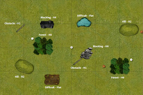 This time we played scenario Occupy. In the map above, the white tokens represent those worthy 1 point and the orange ones are worthy 2 each. However, as per scenario rules, only the objectives on the opponent's half can be claimed for 2 points. If it is in your own half, you can only contest or defend it.