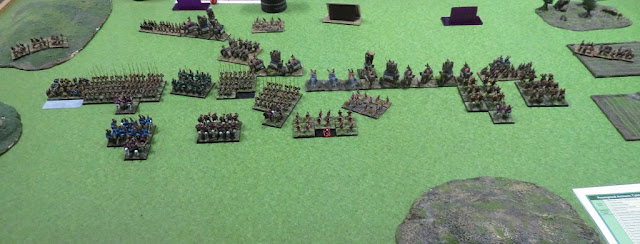 We ended up with the secure flank of mountains and a few pieces of the terrain scattered on the edges of the battle field. It meant that the centre of the battle field was still open and we had plenty of room to manoeuvre.